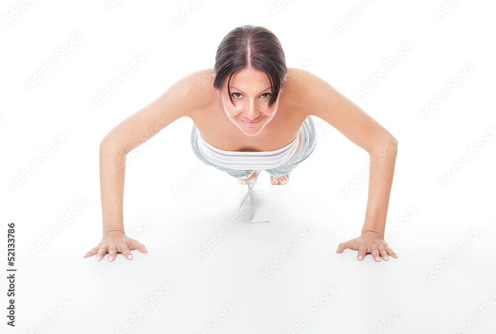 Young woman doing push ups exercise