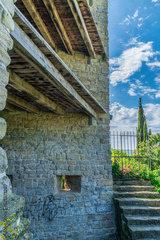 City walls of Piran Piransko obzidje on sunny spring day