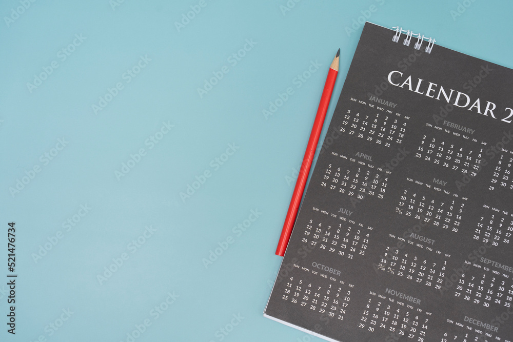 close up of calendar on the greenl table background, planning for business meeting or travel planning concept