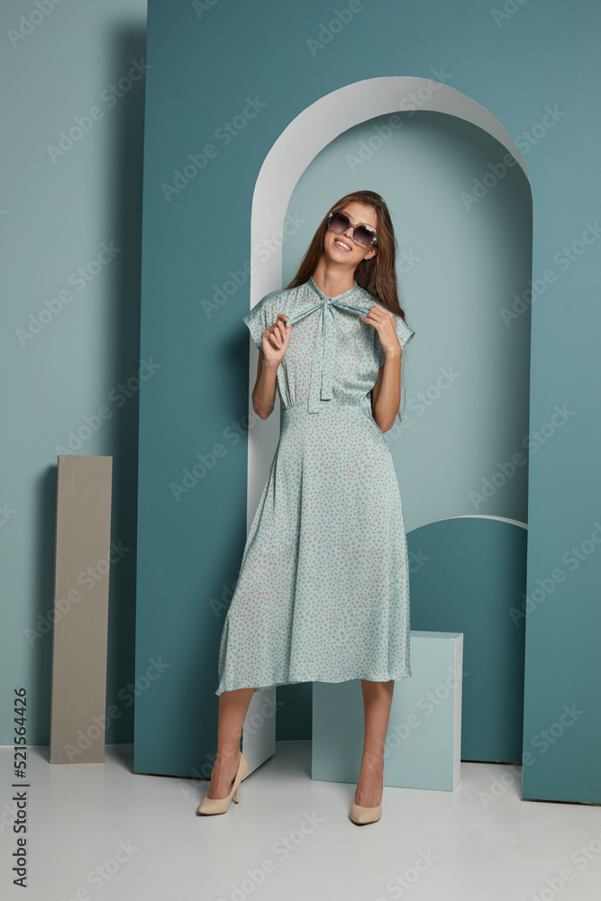 Young asian woman in light green dress.