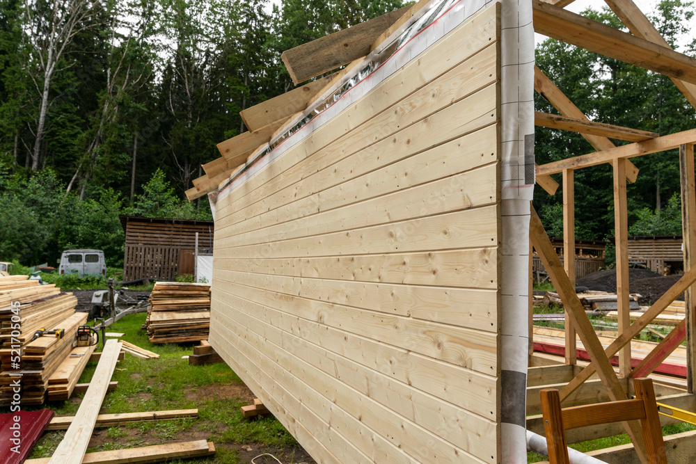 construction of a frame house. Timber frame house, new build roof