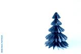 Handmade foldable Christmas tree from plastic free material - green paper isolated on white background. DIY concept.