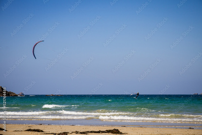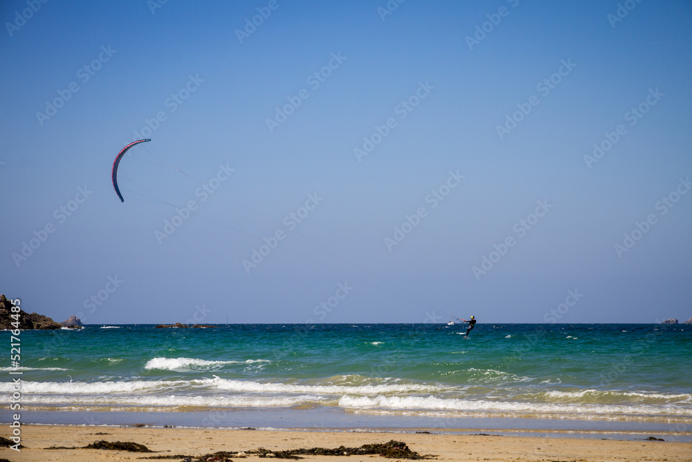 Kitesurfer on sea in Saint-Malo city, Brittany, France