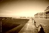 Saint-Malo lighthouse and pier view from the city fortifications, Brittany, France