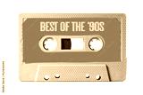 An old vintage cassette tape for easy storage of music and auido, isolated, with text on the label: best of the 90s.
