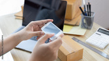 Man taking a photo of product in box postbox with a mobile phone, Identity verification or order confirmation, Business style for working at home, Working at home and owning businesses.