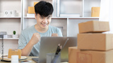 Man was happy after receiving an order from an internet customer, New business style for young people working at home and owning businesses, Online shopping SME entrepreneur, Packing box, Sell online.