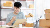Man was happy after receiving an order from an internet customer, New business style for young people working at home and owning businesses, Online shopping SME entrepreneur, Packing box, Sell online.