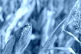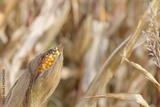 In late October, after harvest, corn stalks and ears are seen in the field.
