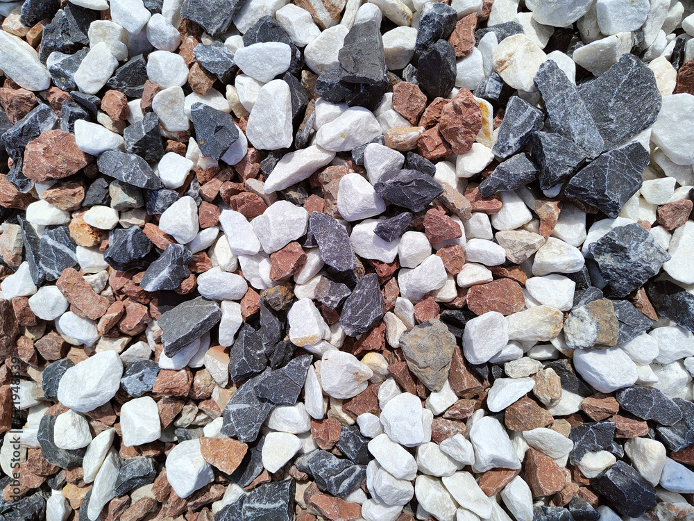 Crushed stone. Background from multi-colored stones. Construction. parks and roads.