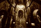 Interior of the St. Sophia Cathedral with mosaic Orans of Kyiv, frescoes on the wall and the golden altar. Kyiv, Ukraine