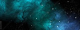 Nebula and stars in night sky web banner. Space background with realistic nebula and shining stars. Abstract scientific background with nebulae and stars in space. Multicolor outer space.