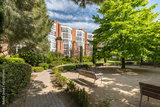Cozy park for walking and resting. Modern residential complex in Barcelona, Spain