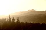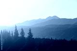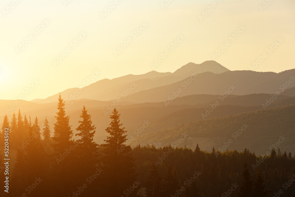 foggy evening landscape in Carpathian Mountains, Ukraine.