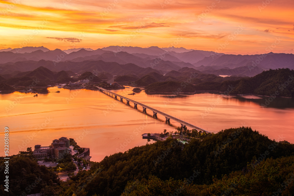 sunset over the Thousand Islands Lake, Zhejiang, China