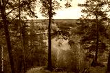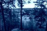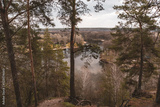 Scenic view on river with tall pine trees. Cossack mountain, Korobovy Hutora (Gomilshanski forest, Koropove village) on Siverskyi Donets River in Ukraine