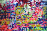 Children's drawings and coloring with paints on plastic wrapping paper