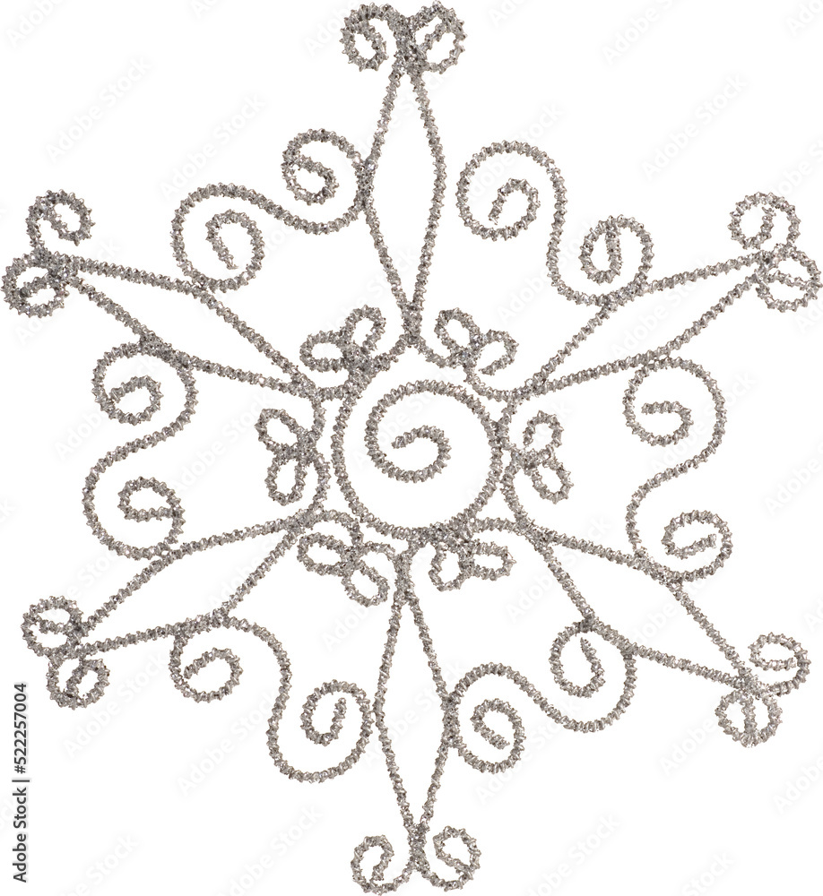 Silver glitter tinsel Christmas snowflake ornament cutout transparent background