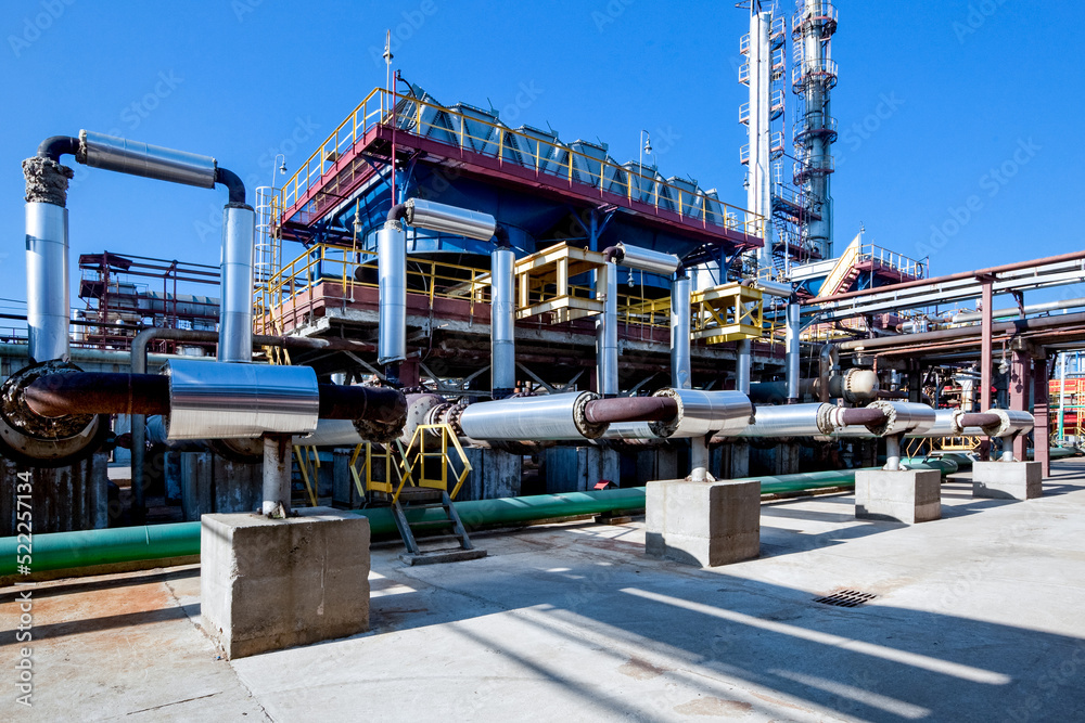 Oil refinery plant and industry zone. Oil and gas petrochemical industrial background