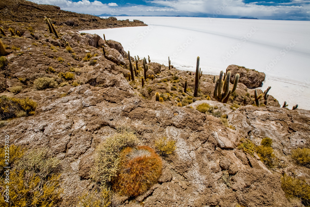 Cactus in rocks, Bolivia. Nature of South America, Salar de Uyuni, Bolivia