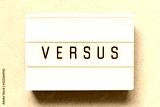 Lightbox with word versus on wood background