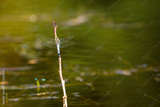 a blue leaf dragonfly at a river
