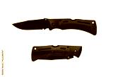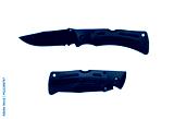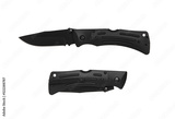 Pocket folding knife isolate on white back. Compact metal sharp knife with a folding blade.