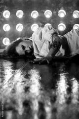 Sexy girl dance on front of spot light wall with smoke