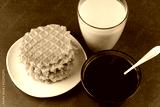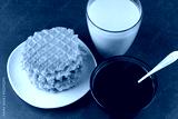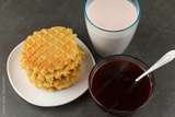 Belgian waffles with raspberry jam. Belgian waffles with berries