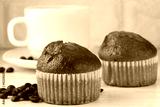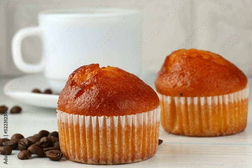 Muffins and coffee in the kitchen. Baked breakfast.