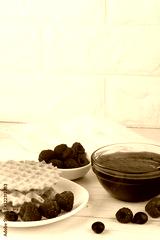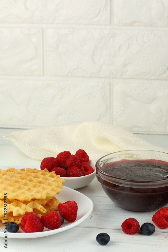 Belgian waffles with raspberry jam. Belgian waffles with berries