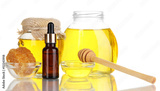 Fragrant honey spa with oils and honey isolated on white