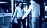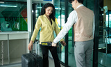 Passengers at check in counter. businesswoman in suit holding his passport and talking to woman at airline check in counter in the airport