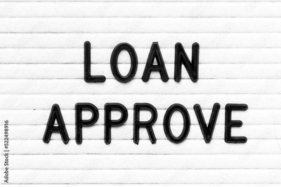 Black color letter in word loan approve on white felt board background