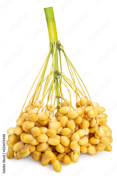Bunch of Yellow date palm isolated on white background, Yellow date palm on white With work path.