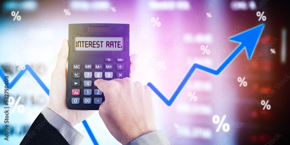 Man hands calculate interest rate by use calculator