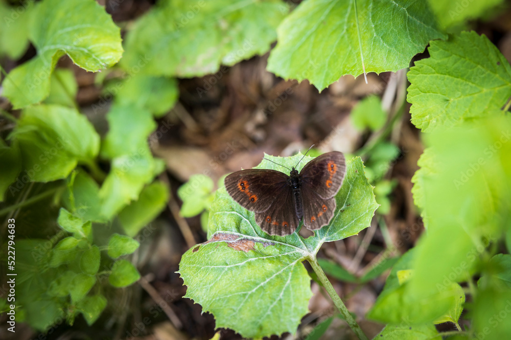 Scotch Argus - Erebia Aethiops Butterfly Close Up in Woods