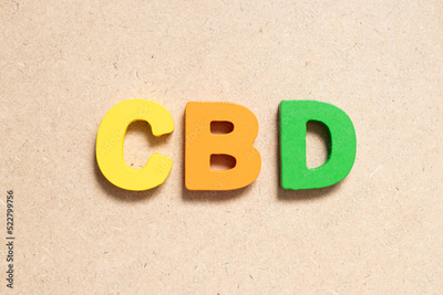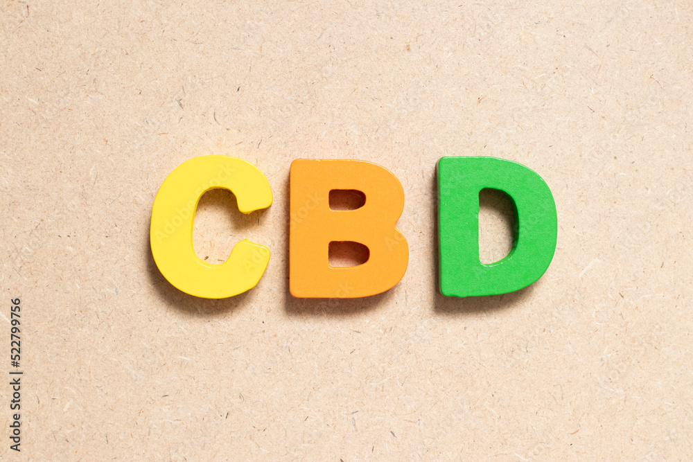 Color alphabet letter in word CBD (Abbreviation of Central business district or .Cannabidiol) on wood background