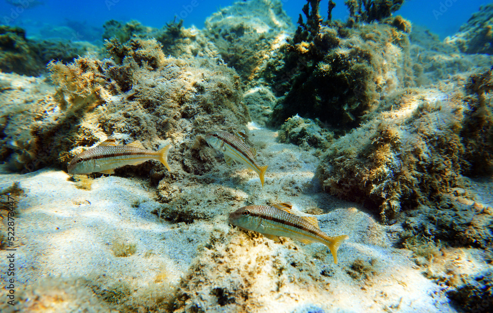 Mullus barbatus - Goatfish photographing underwater in the Mediterranean Sea