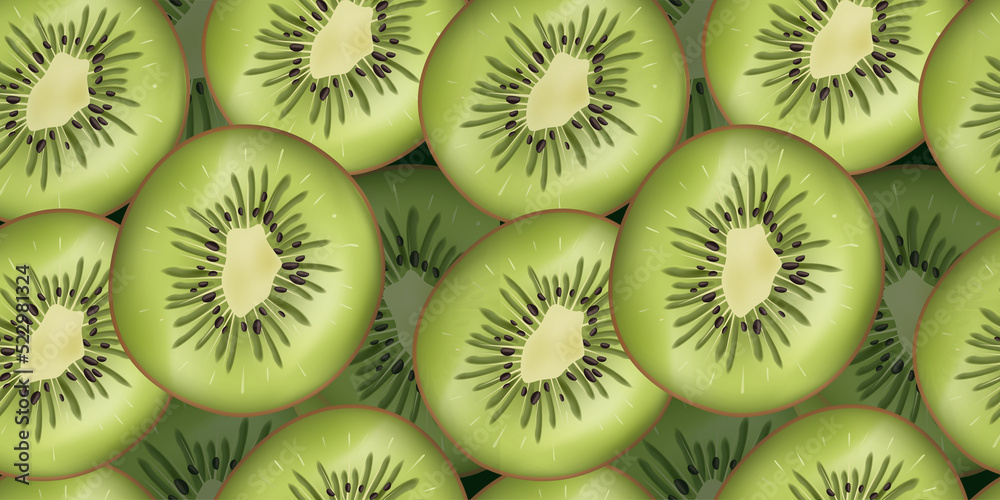 kiwi fruit background. food. kiwi pieces. fruit. summer seamless background. green wallpaper. tablecloth. vector illustration. pattern with kiwi. print