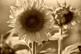 yellow bright sunflower flower close-up on a green background. Farm, agriculture, august concept