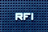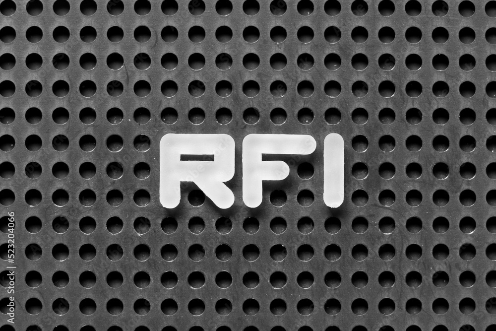 White alphabet letter in word RFI (Abbreviation of request for information) on black pegboard background