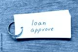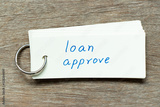 Flash card with handwriting word loan approve on wood background