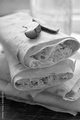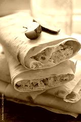Lavash roll stuffed with cheese, pickles and chicken. Snack. vertical photo
