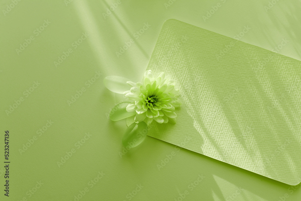 Empty Blank texture canvas paper card with white flower and stones. Light and shadows minimalism horizontal copy space background.