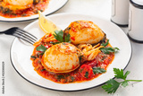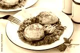 Sepia, calamari or Cuttlefish stuffed with swiss chard, bread crumbs and parmesan cheese and cooked in tomato sauce.