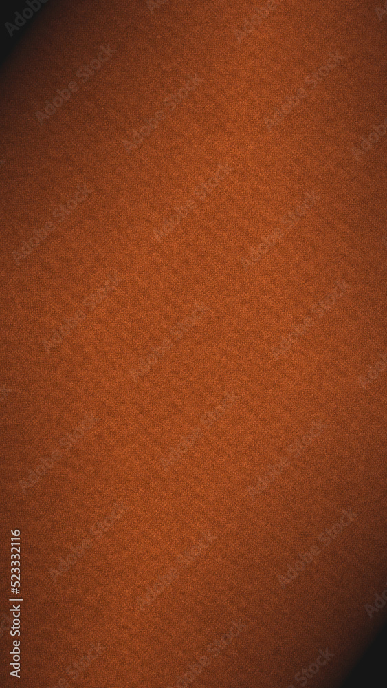 Dark orange colored paper texture. Bright brown vertical background. Mobile phone wallpaper with vignetting. Textured surface, fibers and irregularities are visible. Top-down