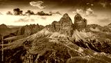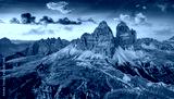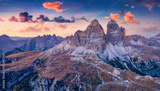 Violet sunrise in Tre Cime Di Lavaredo National Park. Fantastic morning view of Dolomite Alps, Auronzo location, Italy, Europe. Beauty of nature concept background.