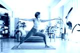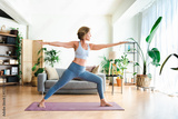 Beautiful mature senior woman at home - Cheerful active mature female person doing fitness training in her apartment, concept about domestic life, healthy lifestyle, dieting and quality of life