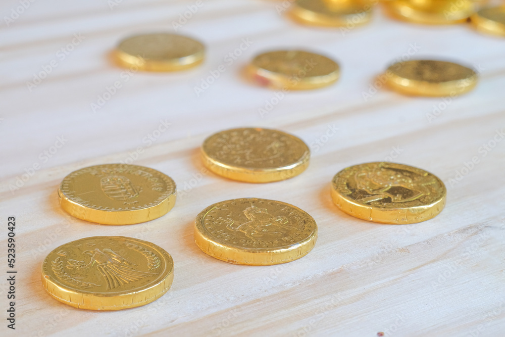A pile of fake golden coins,business concept.